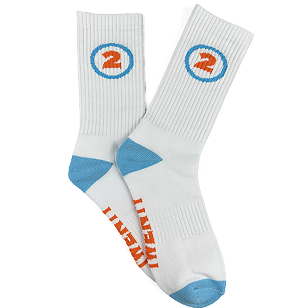 Our socks are made from high-quality materials such as cotton, polyester, and spandex, ensuring durability and breathability during your workout. The white, orange, and blue color scheme adds a touch of personality to your athletic gear, allowing you to stand out from the crowd.